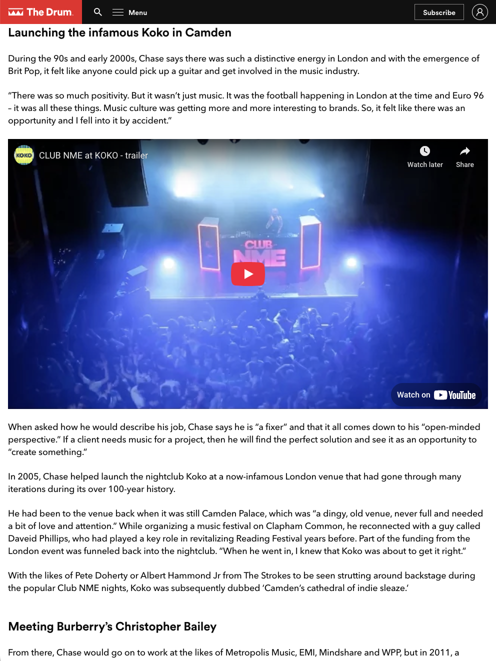 Dave Chase is a renowned Music Director in the luxury and fashion industry, most known for building and leading a pioneering music department for Christopher Bailey at Burberry.